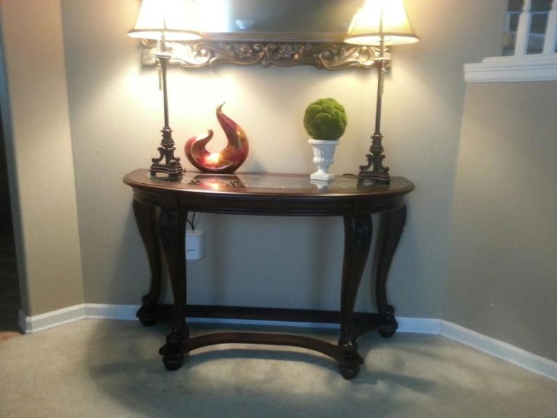 The Meggett Linen Sofa Loveseat Havalance Cocktail Table 2 End Tables Sofa Table Available At Logan Furniture Serving Dorchester Ma from cdn11.bigcommerce.com I put both end tables together today, i was a little disappointed as some of the wood on edges underneath the table, wood was splitting and rough, also especially on one end table, the bottom piece was scuffed up quite a bit. Shop affordable console tables & accent tables for the home. Their fanciful pattern is echoed in the carvings and curves of the richly stained legs and stretchers. Signature design by ashley fregine coffee table. The norcastle occasional table set deserves a toast for incorporating so many elements so seamlessly. Swirls of metal accents add a lovely dimension under a beveled glass inset tabletop. Signature design by ashley® norcastle sofa table. Accent your living room with a coffee, console, sofa or end table.